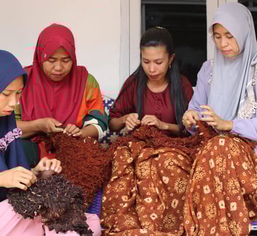 Kami mendukung perempuan pengrajin lokal melalui pelatihan dan produk ramah lingkungan, menjaga budaya dan lingkungan, serta menciptakan dampak positif bagi komunitas di Musi Banyuasin dan Balikpapan.